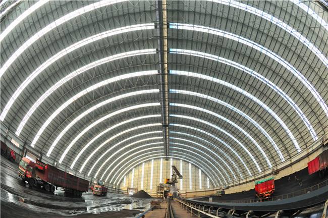 堆场料场封闭式主体结构为新型的钢通化网架结构,维修结构为通化钢结构通化不锈钢板和纤维增强塑料灯具,其外形以通化网架式和平板为主,连接柱通化施工自由,设置喷雾自动喷水系统,从而可以实现棚内所有物料的覆盖,减少物料在运输过程中的损耗,起到防尘的作用,减少工厂关闭后的二氧化硫排放量,50mg/m3颗粒排放量小于10mg/m3,非常适合低能耗。低闭库自动感应反应对库存轮胎进行清洁,确保轮胎不受道路污染;封闭的储存区可从源头控制粉尘污染,控制无序排放。